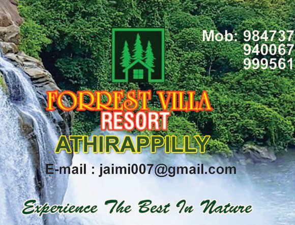 πΏ Experience the Best in Nature Forrest Villa Resort β Athirappally Escape into natureβs embrace at Forrest Villa Resort, nestled amidst the lush greenery and waterfalls of Athirappally, Thrissur. Whether you're looking for a peaceful retreat or an adventurous getaway, we offer the perfect blend of comfort, nature, and hospitality. β Scenic Location Near Athirappally Waterfalls β Comfortable & Stylish Accommodations β Ideal for Families, Couples & Nature Lovers β Personalized Service & Serene Ambiance π Location: Athirappally, Thrissur π§ Email: jaimi007@gmail.com π Contact: 98473 77232 | 94006 72531 | 99956 17332 πΏ Forrest Villa Resort β Where Nature Meets Luxury πΏ