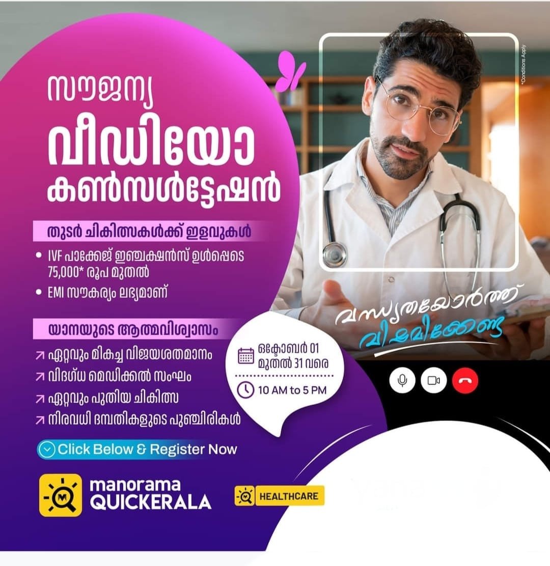 πΈ Free Video Consultation Special Discounts on Follow-Up Treatments π Exclusive IVF Package Starting from just βΉ75,000* β including injections! π³ EMI Options Available π Trust in YANA β Where Hope Begins β One of the highest success rates β Team of 7 expert medical professionals β Advanced treatments with modern technology β Countless couples helped to smile again π Offer Valid: October 1 β 31 π Timings: 10 AM to 5 PM π Powered by Manorama Quickerala Healthcare πΆ Donβt suffer in silence β there is hope for infertility. β Click Below & Register Now π Contact: 79079 90924 Conditions Apply