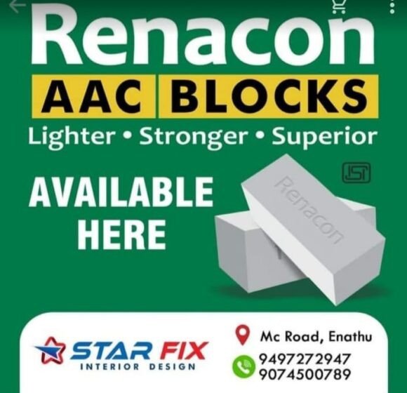 🏠 STARFIX Interior Design Transforming Spaces with Style & Strength 📍 Location: Adoor, Mannadi 🔨 Building Materials Available: ✅ High-Quality AAC Blocks • 4″ Blocks • 6″ Blocks • 8″ Blocks Perfect for modern construction – lightweight, durable & energy-efficient! 📞 For Orders & Enquiries: 📲 Dinesh Kumar (Unni) 📞 94972 72947 | 99469 72947 STARFIX Interior Design – Crafting Your Dream Spaces!