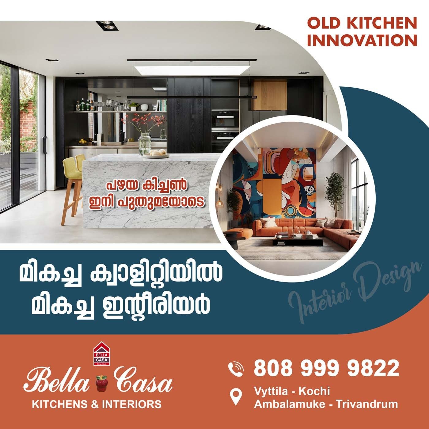 OLD KITCHEN INNOVATION ✨ Give your old kitchen a brand-new look! ✨ Transform your outdated kitchen into a modern, stylish, and functional space with Bella Casa Kitchens & Interiors. ✔️ High-Quality Materials ✔️ Smart Interior Design ✔️ Expert Craftsmanship ✔️ Affordable Innovation From concept to completion – we bring elegance, utility, and excellence to your kitchen. 🏡 BELLA CASA – Kitchens & Interiors 📍 Vyttila – Kochi | Ambalamukku – Trivandrum 📞 Contact: 808 999 9822 Because every kitchen deserves a beautiful makeover!