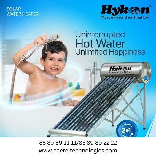 βοΈ Hykon Solar Water Heaters Enjoy Hot Water. Save Energy. All Year Round. Say goodbye to rising fuel costs and experience the convenience of free, uninterrupted hot water in every season β with Hykon, India's best-selling solar water heater brand. π Why Choose Hykon? β Zero Fuel Cost β Get hot water for free using solar energy β All-Season Performance β Reliable supply even in colder months β Multiple Capacity Options: β’ 100L, 130L, 200L, 260L, 340L β up to 1000 liters β Slope Roof Variants β Perfectly designed for domestic rooftop installations β Trusted Brand β One of Indiaβs bestsellers in solar water heating β»οΈ Eco-friendly | Cost-saving | Maintenance-friendly π§ Ideal for homes, villas, apartments & institutions π Hykon β The name trusted by thousands across India.