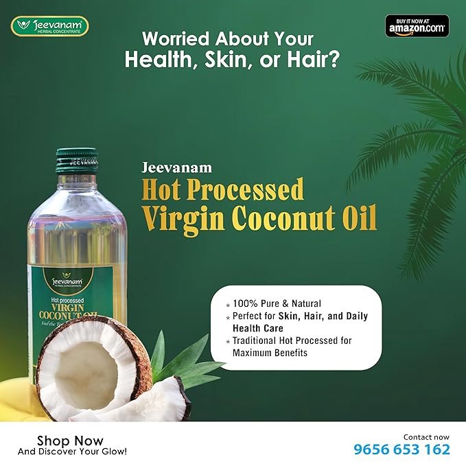 🥥✨ Jeevanam Virgin Coconut Oil – Pure Goodness. Powerful Benefits. ✨🥥 100% Natural | Cold-Pressed | Ayurvedic Wellness Unlock the ancient secrets of health with Jeevanam Virgin Coconut Oil – a versatile, nutrient-rich superfood trusted for generations. 🌿 Why Choose Jeevanam? 1️⃣ Weight Loss Support – Rich in MCTs to naturally boost metabolism and energy 2️⃣ Heart-Healthy – Helps lower bad cholesterol while raising good HDL cholesterol 3️⃣ Diabetes Management – Assists in stabilizing blood sugar levels and insulin sensitivity 4️⃣ Powerful Antioxidants – Fights inflammation and supports long-term heart health 5️⃣ Ayurvedic Heritage – A time-honored remedy for internal and external healing 6️⃣ Immunity Booster – Packed with lauric acid for strong antibacterial & antiviral protection 💧 Ideal for cooking, skincare, haircare, and daily wellness! 📞 To Order Now: 96566 53162 Pure. Potent. Jeevanam. 🥥🌿