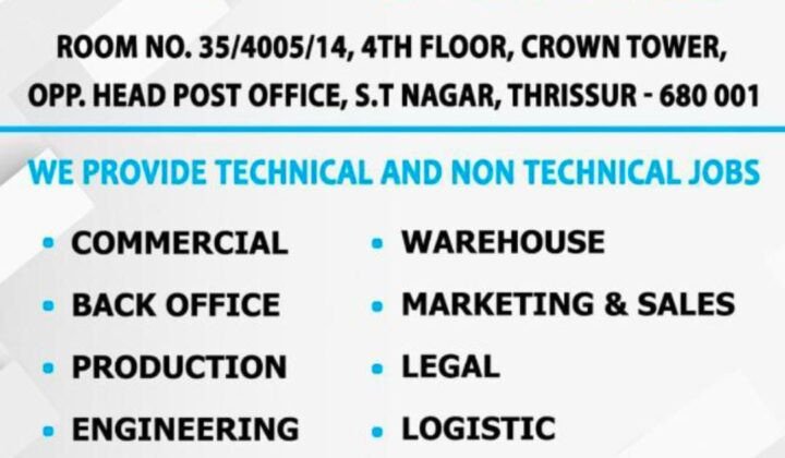 π MAXWELL OPPORTUNITIES Connecting You to the Right Career We offer Technical & Non-Technical Job Placements across multiple industries: πΌ Job Categories: β’ Commercial β’ Warehouse β’ Back Office β’ Marketing & Sales β’ Production β’ Legal β’ Engineering β’ Logistics Whether you're a fresher or experienced professional, we help you find the perfect role based on your skills and interests. π Visit Us: Room No. 35/4005/14, 4th Floor, Crown Tower Opp. Head Post Office, S.T Nagar, Thrissur β 680 001 π§ Email: maxwellopportunities@gmail.com π Contact: 86066 76065 | 62358 99739 Your future begins here. Letβs build it together with Maxwell Opportunities!