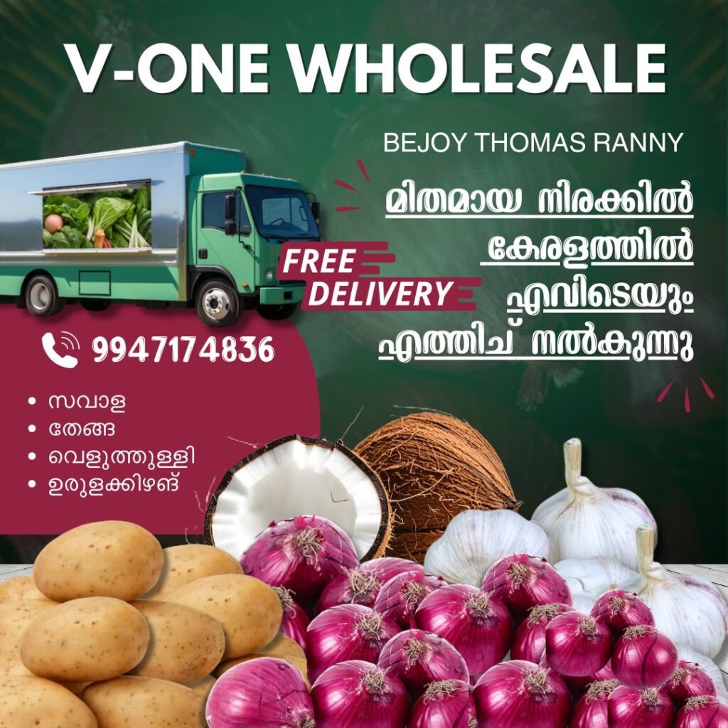 🛒 FRESH & WHOLESOME VEGGIES AT YOUR DOORSTEP! V-ONE WHOLESALE – BEJOY THOMAS, RANNY 🥔🥥🧄🧅 🚚 Delivering Across Kerala – Absolutely FREE! Get the freshest essentials at unbeatable prices: 🧅 Onions 🥥 Coconuts 🧄 Garlic 🥔 Potatoes 💰 Affordable Rates 🌱 Premium Quality 🏡 Fast & Reliable Home Delivery 📦 Order Now – Anywhere in Kerala! 🎁 FREE DELIVERY Guaranteed! 📞 Contact: 99471 74836 👤 BEJOY THOMAS, RANNY 🏪 V-ONE WHOLESALE